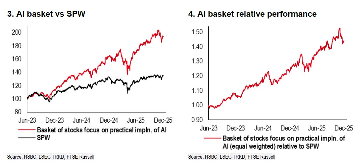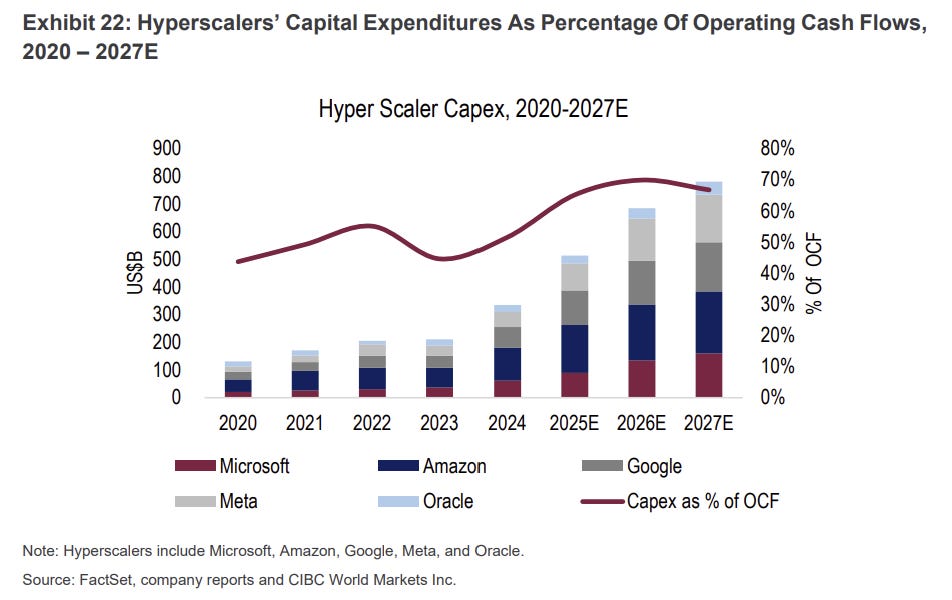 I. AI infrastructure investment: As Big Tech continues to invest record levels of capex into AI infrastructure (chart below), several key questions have been raised around useful life estimates, fungibility of this capex, and potential risk of overbuilding if revenue from “pent-up” demand fails to keep pace or if a glut ensues.