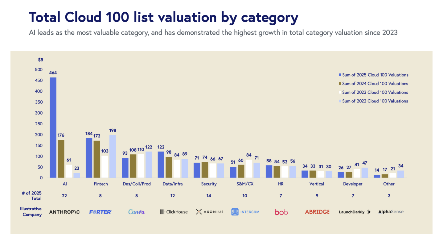AI hype continued in 2025, but the rising tide did not lift all ships equally, as this was a year dominated by AI power-law winners. “Power-law” (an extreme distribution where a few standouts account for the lion’s share of impact) is a familiar concept in VC. AI, however, has pushed this phenomenon into overdrive, with AI power-law leaders compounding performance, momentum, and valuations to truly historic levels.