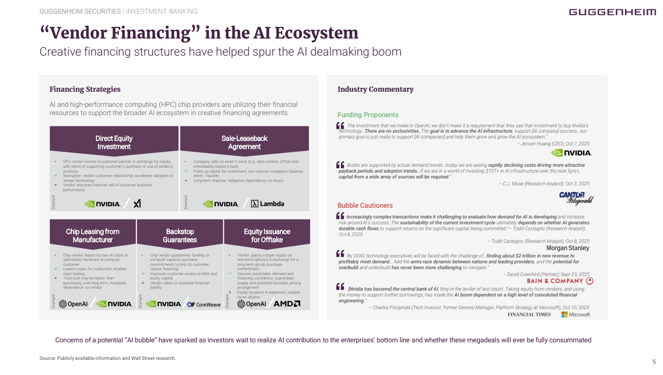 Complicating matters further is the emergence of “circular deals” involving creative financing structures from Big Tech giants, which injects additional risk into the ecosystem and raises questions about quality of revenue: