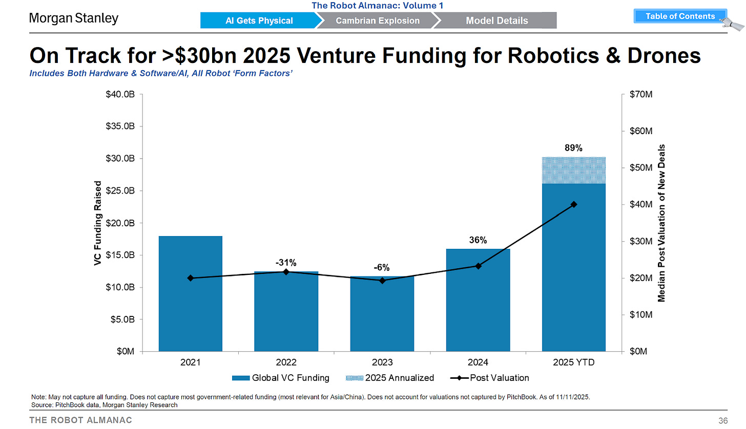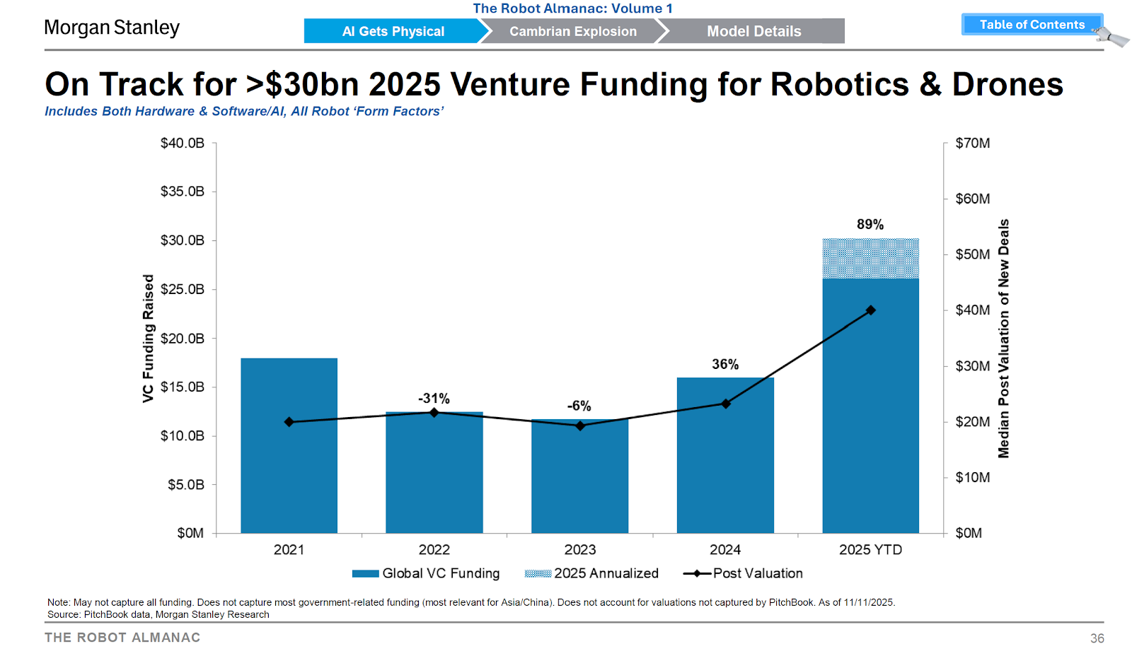 Physical AI is certainly having its moment and VC funding in the sector has seen a meaningful uptick recently (chart above). As I wrote in my 2026 predictions piece, the embodied AI race could prove more intense and consequential than the LLM wars.