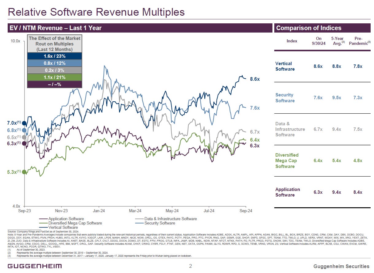 Even as interest rates drop, if public market investor demand for SaaS stocks continues to be persistently tempered by the perception of weakening fundamentals, where do multiples ultimately normalize?