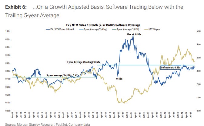 Unsurprisingly, last month’s rate cut announcement by the Fed was welcome news to SaaS investors, particularly since software stocks have been trading below trailing 5-year averages on both an absolute and growth-adjusted basis:
